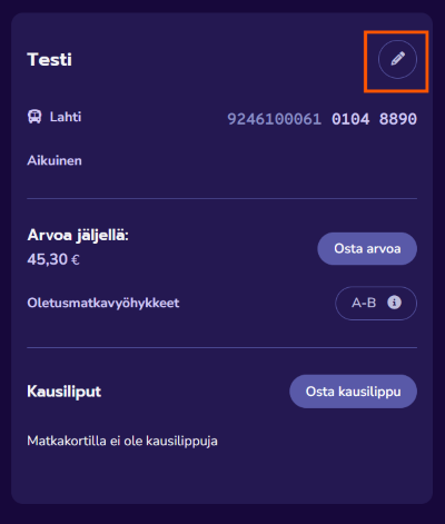 2. Valitse kortin tiedoista Muokkaa.