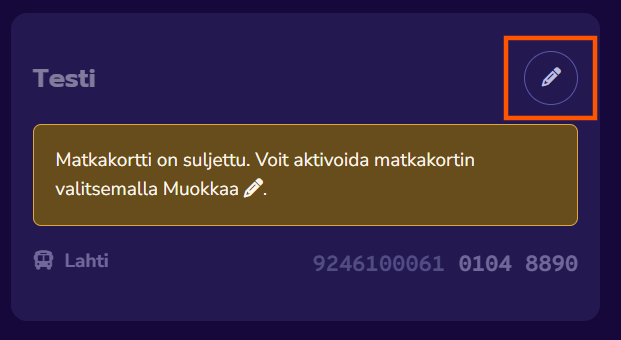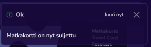 Matkakortti on nyt suljettu
